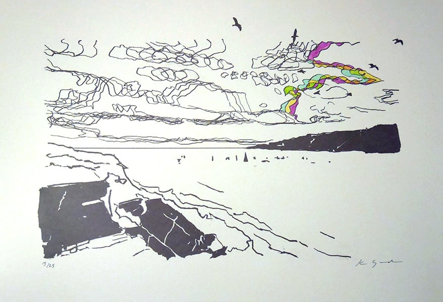 Screen print with watercolour pencil embellishment on 270gsm paper